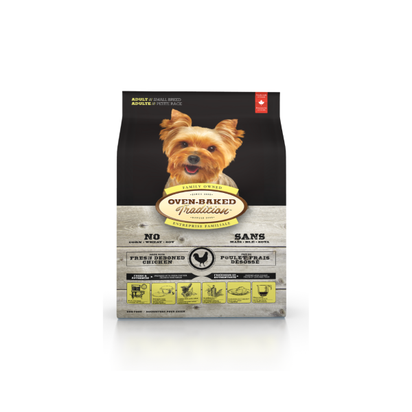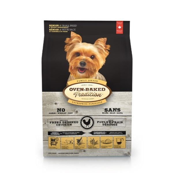 El alimento especial para perros adultos senior de razas pequeñas y el control de peso, de Oven Baked Tradition® Es una comida especial preparada con pollo fresco, frutas y verduras. Es un producto de alta calidad, con cocción al horno para preservar mejor sus ingredientes.