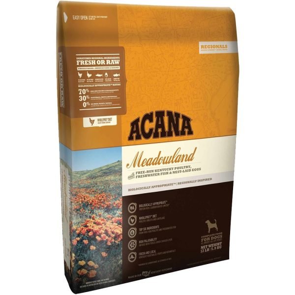 Preparados en nuestras cocinas DogStar con los mejores y más frescos ingredientes de América, ACANA meadowland garantiza mantener a tu perro saludable, feliz y fuerte.