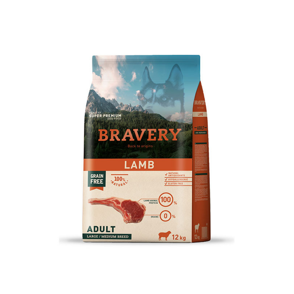 BRAVERY CORDERO ADULTO RAZAS MEDIANAS Y GRANDES LIBRE DE GRANOS 4KG