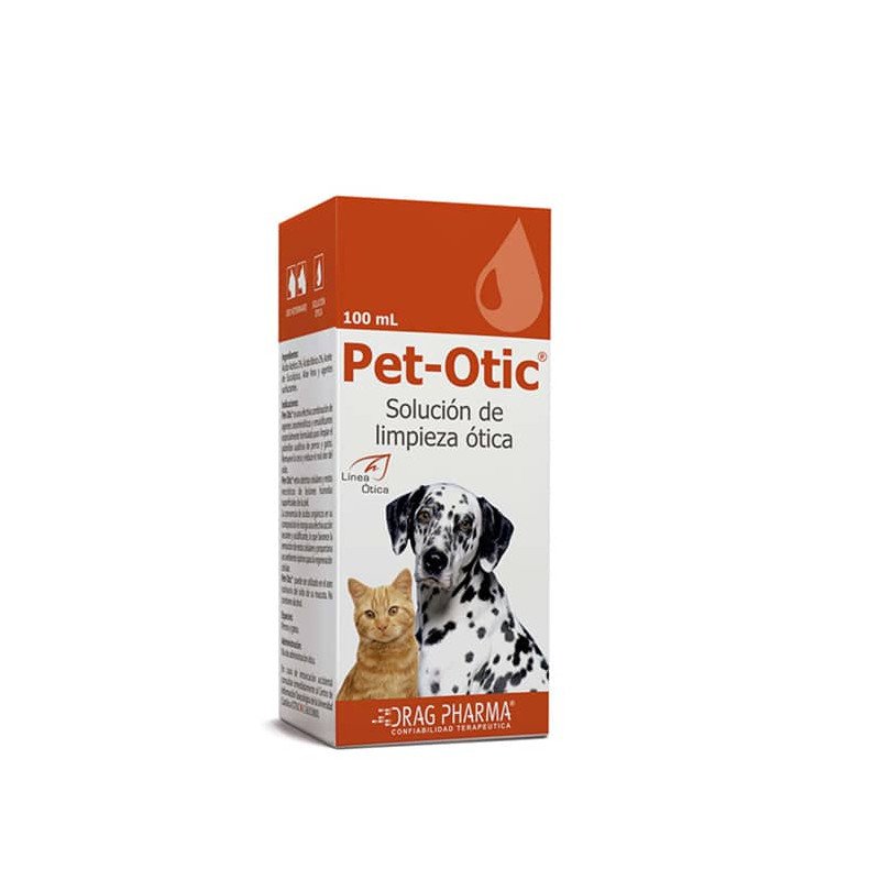 Pet-Otic® es una efectiva combinación de agentes ceruminolíticos y emulsificantes especialmente formulada para limpiar el pabellón auditivo de perros y gatos. Remueve la cera y reduce el mal olor del oído. Pet-Otic® retira detritos celulares y restos necróticos de lesiones húmedas superficiales de la piel.